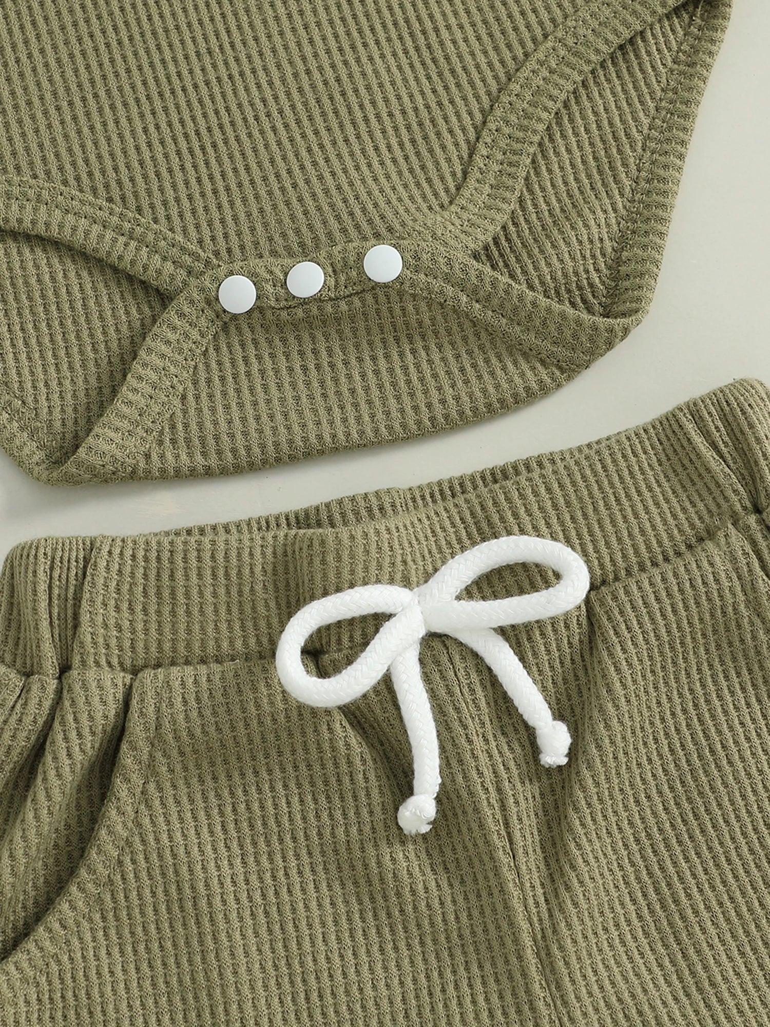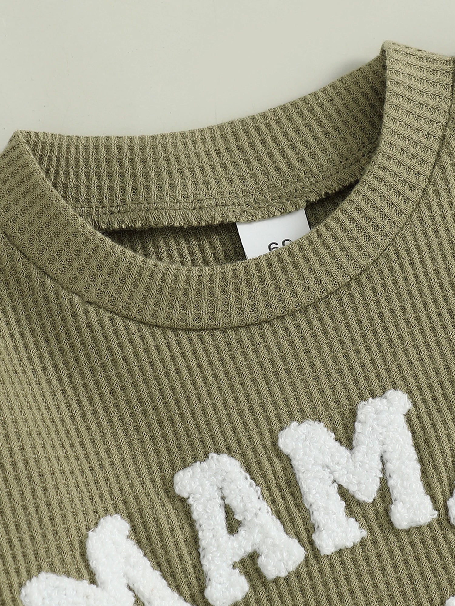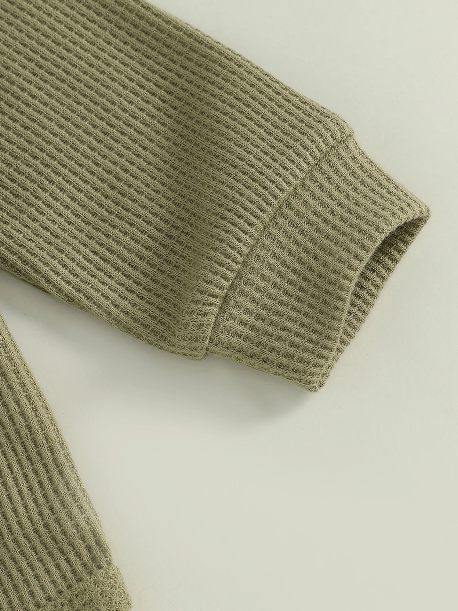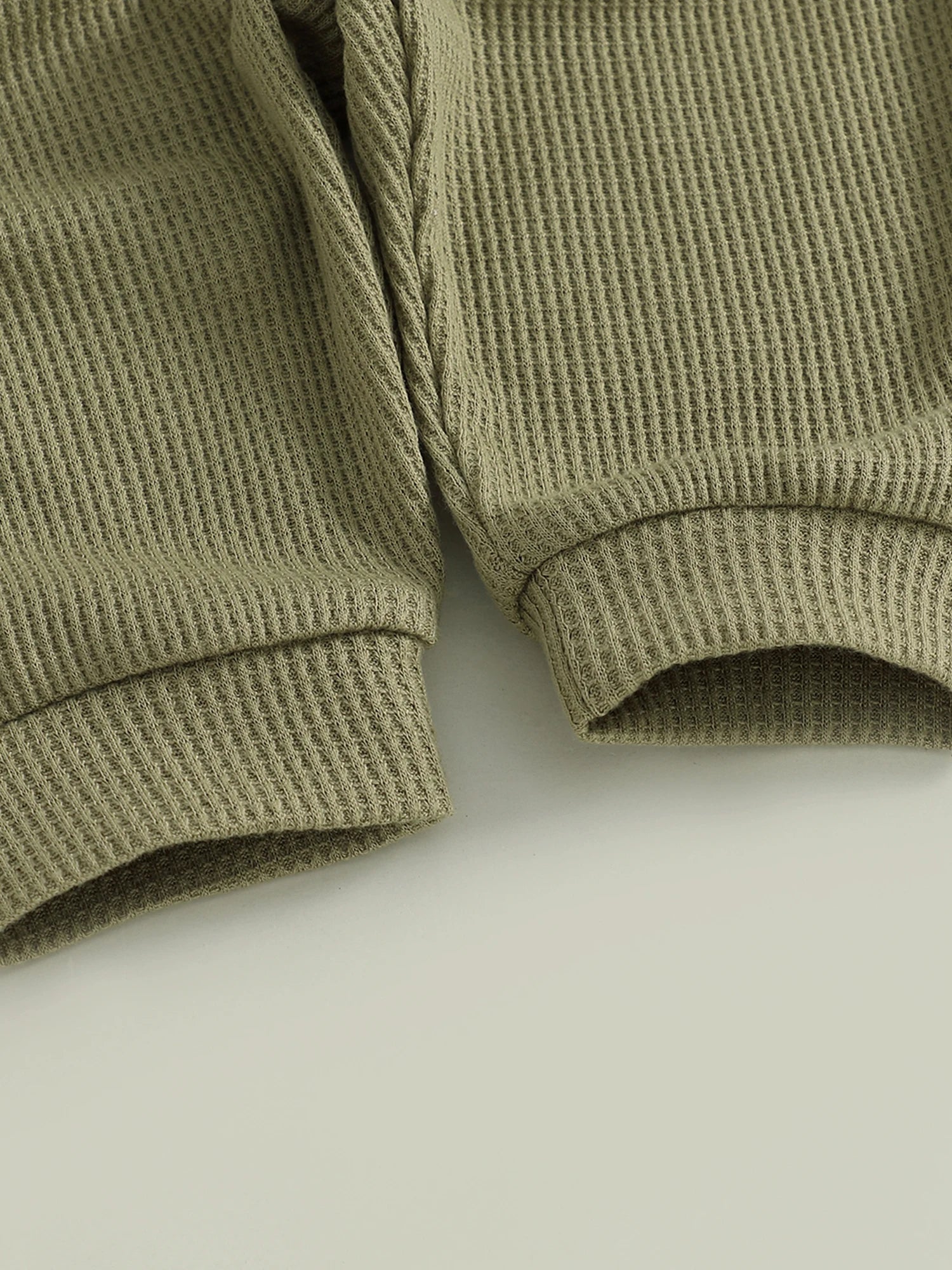 Keep your little one comfy and stylish with this Mamas Boy waffle-knit outfit set. Includes a long-sleeve letter-embroidered romper and elastic-waist pants—perfect for newborns to 18 months.